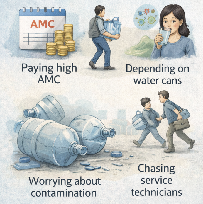Over 5 years, a household can easily spend ₹40,000–₹60,000 on “owning” clean water.